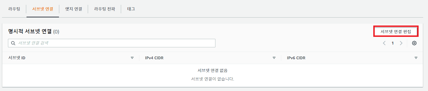 서브넷 연결 편집 클릭