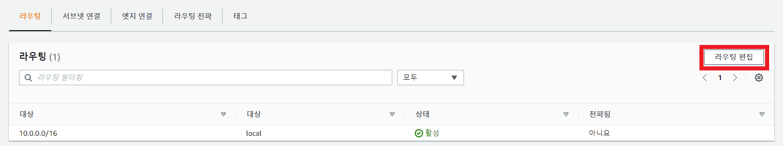 - VPC Console -> 라우팅 테이블